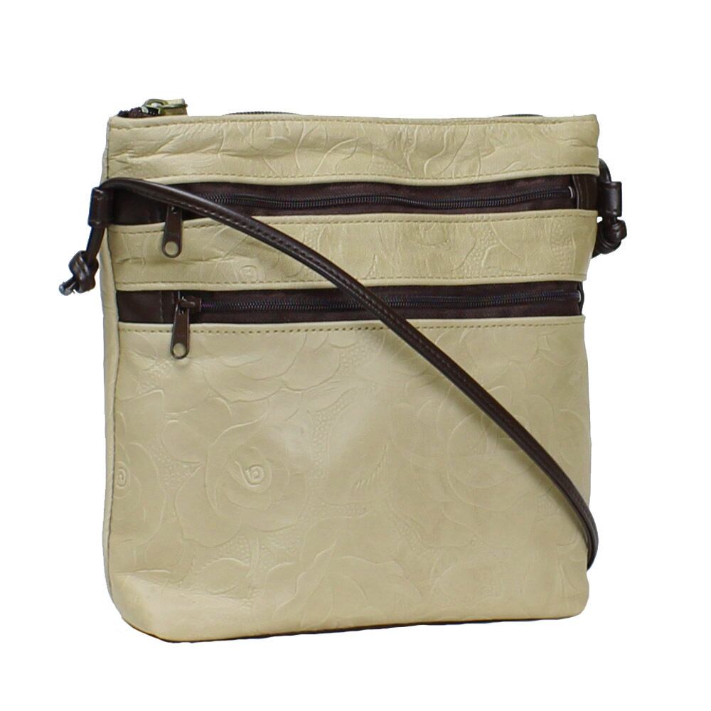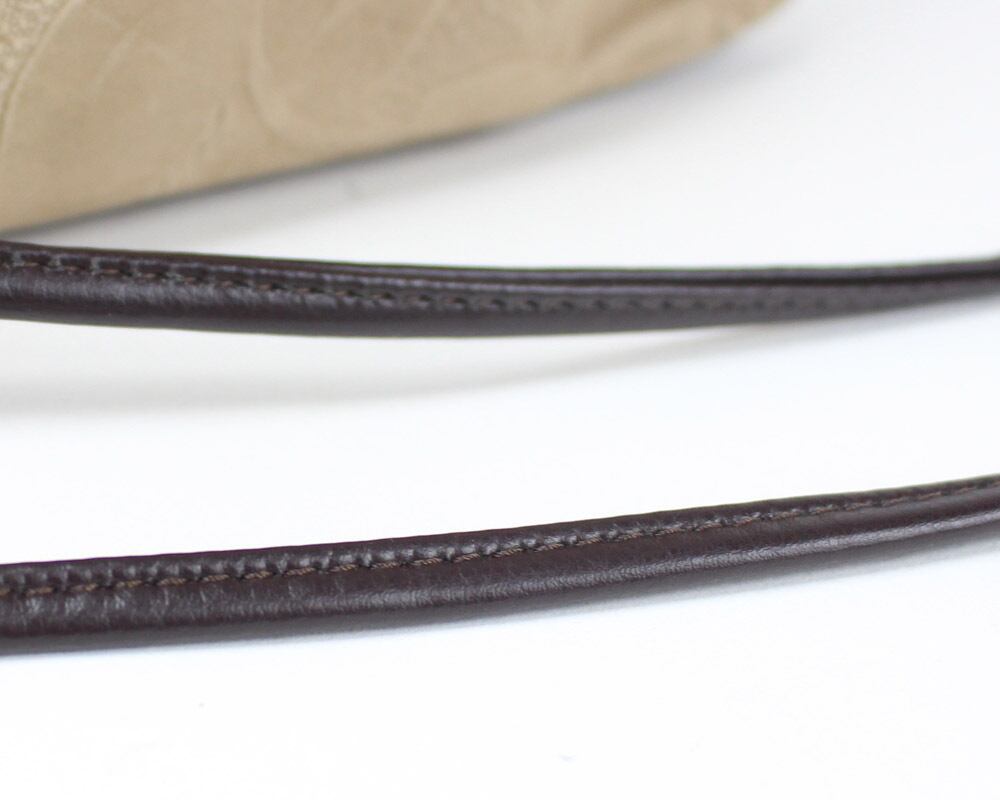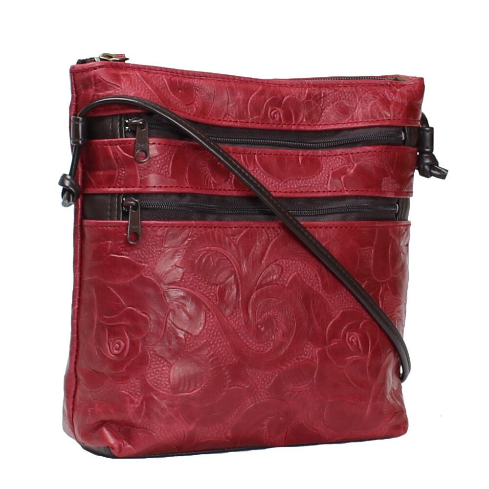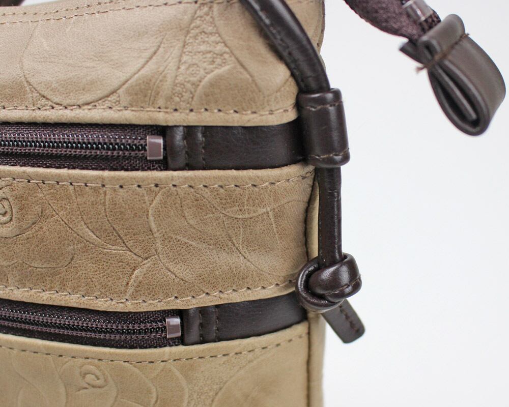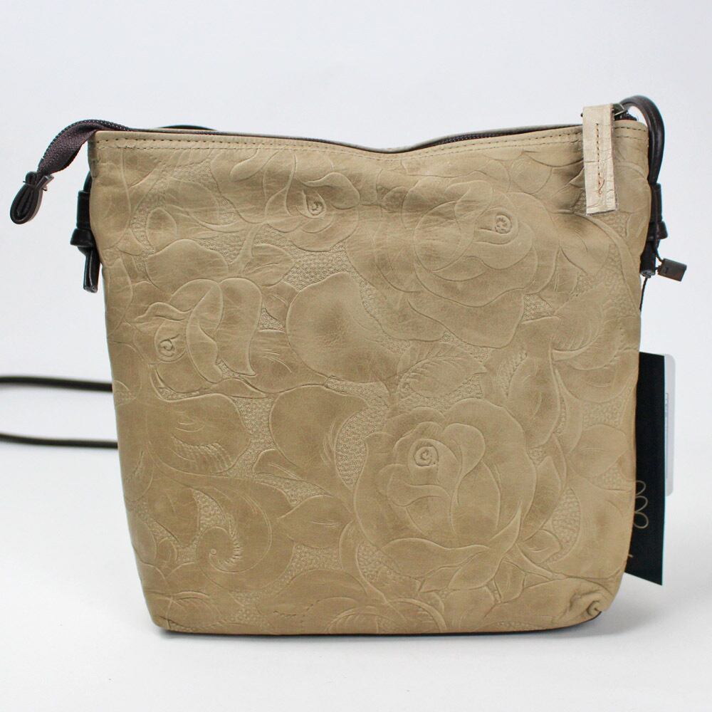 柔らかな牛革に花柄の型押しを施した小ぶりなショルダーバッグ。