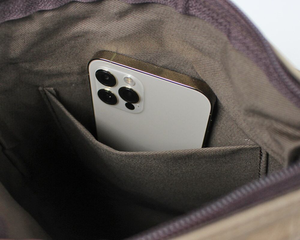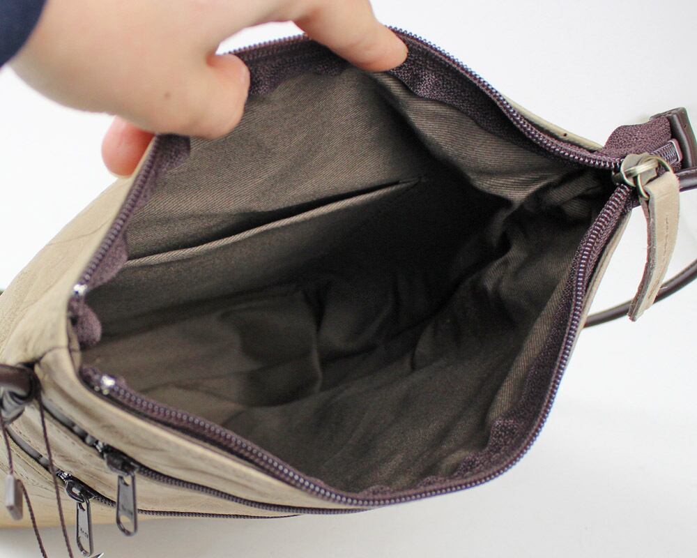 細めのショルダー紐は、両サイドの結び目で長さを調節が出来ます。