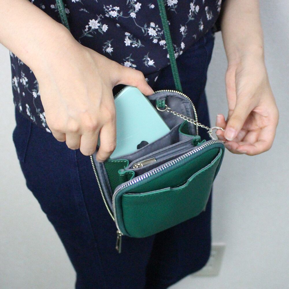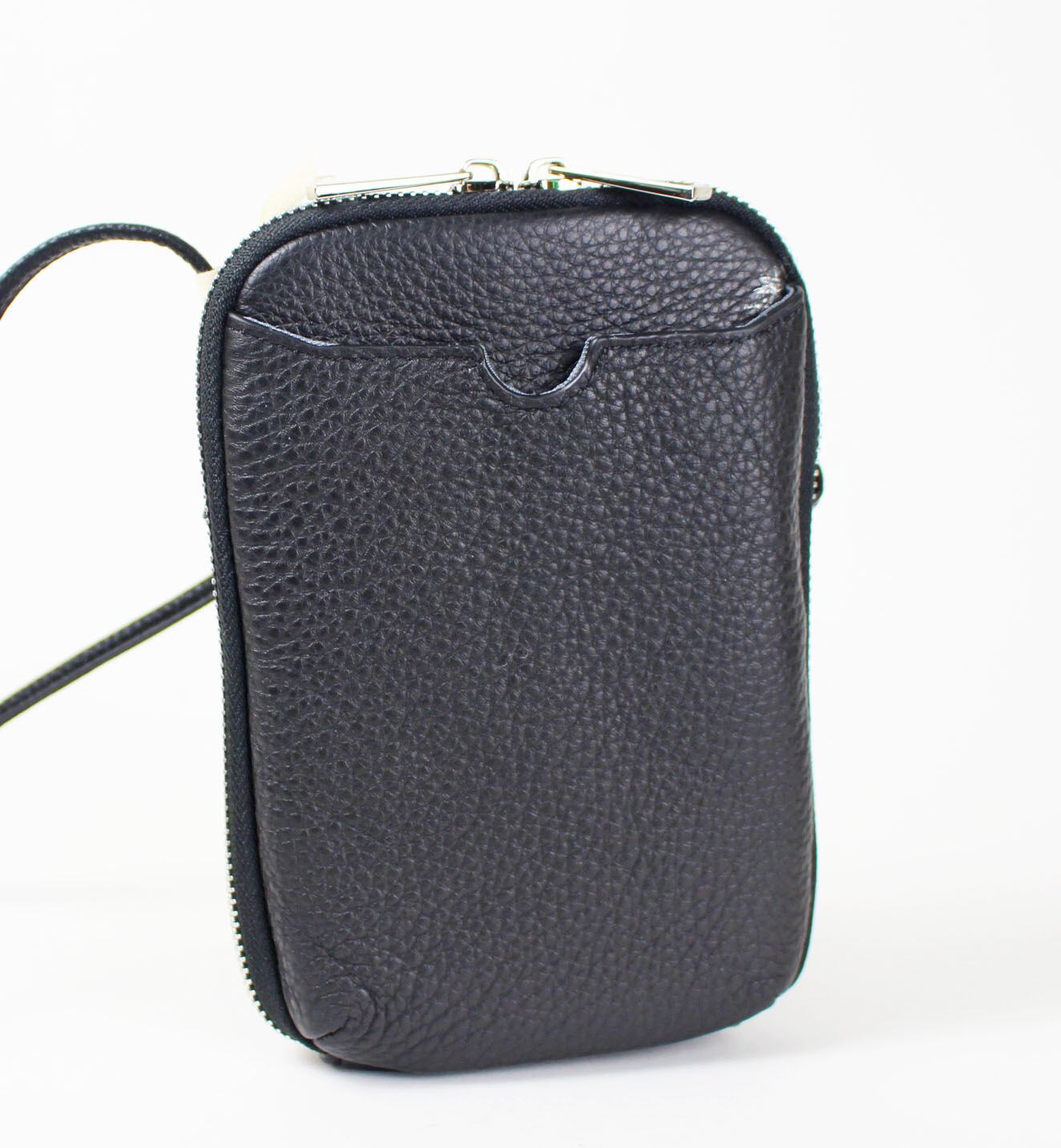 コーディネートのワンポイントに、スタイリッシュで機能的なスマホポシェット。